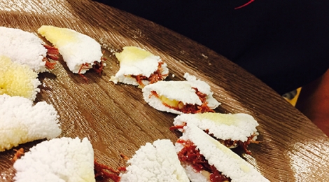 Árabe: babaganuche, homus, kafta, charutinho, quibe de forno, halewa;